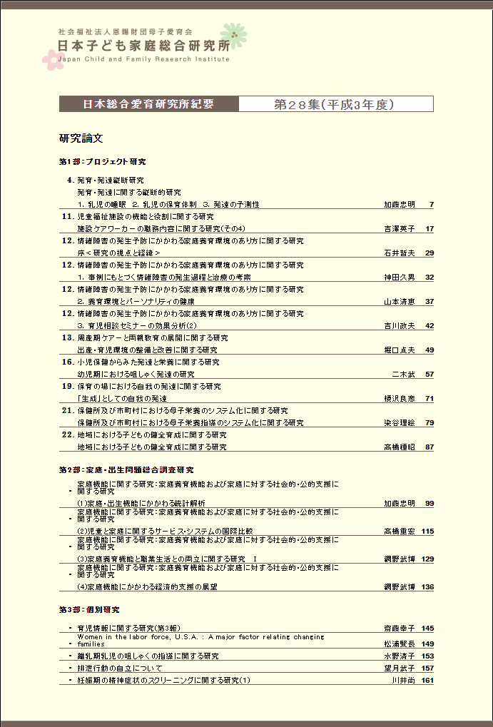 家庭機能に関する研究:家庭養育機能および家庭に対する社会的・公的支援に関する研究 (3)家庭養育機能と職業生活との両立に関する研究 Ⅰ
